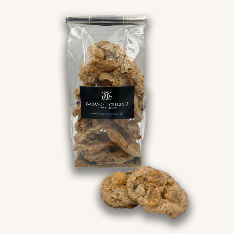 Un biscuit très craquant, épicé et garni de noisettes concassées.
