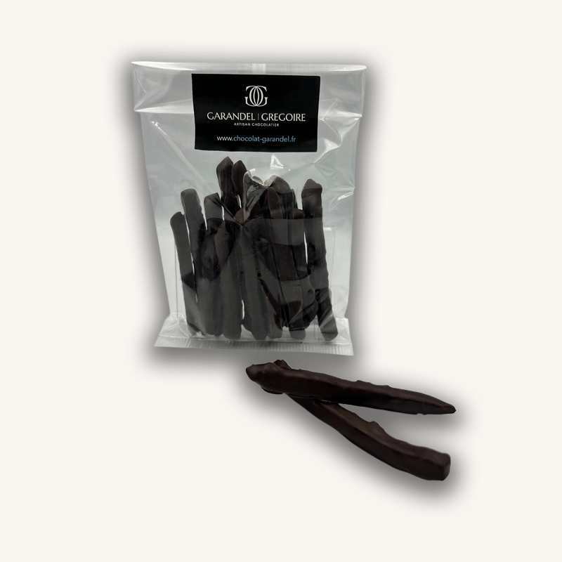 Citron confit 70% (citron, sucre, glucose), chocolat noir minimum 70% de cacao (Pâte de cacao, sucre, beurre de cacao, lécithine de soja sans OGM)