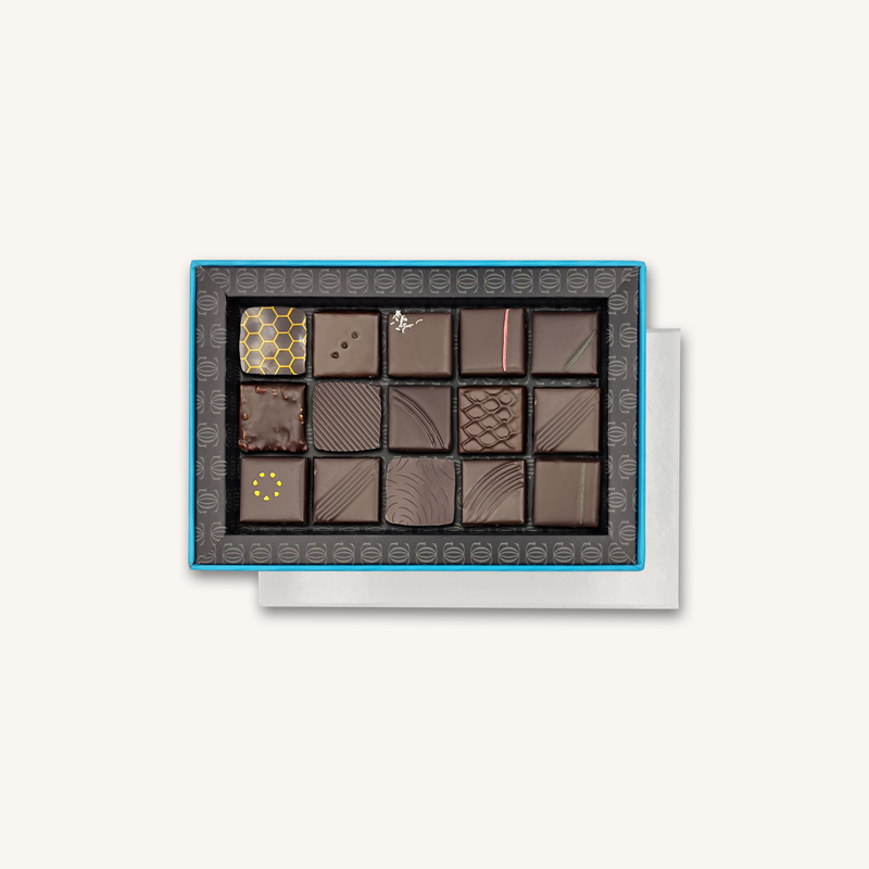 Coffret de 15 chocolats. À découvrir ou à offrir