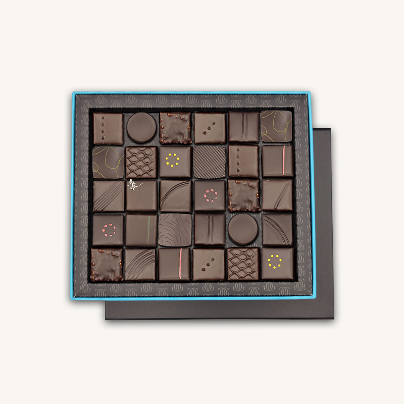 Coffret de 30 chocolats. À découvrir ou à offrir