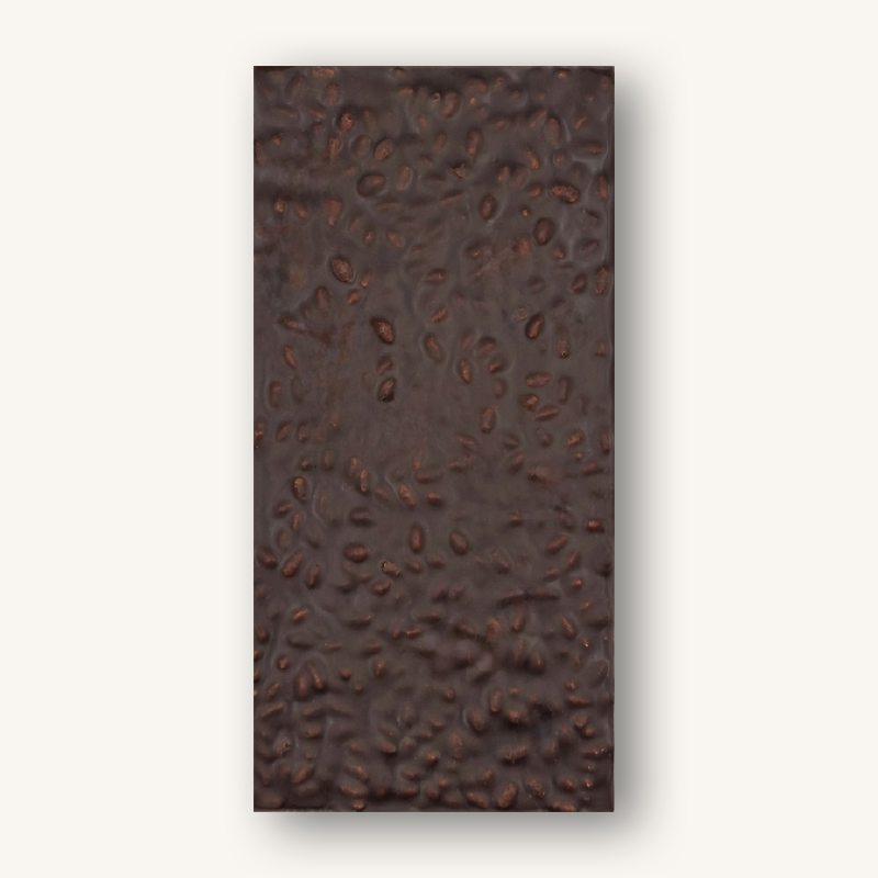 Chocolat noir minimum 70% de cacao (pâte de cacao, sucre, beurre de cacao, lécithine de soja sans OGM), farine de riz (8%)(gluten et malt de blé, sucre, sel, dextrose).