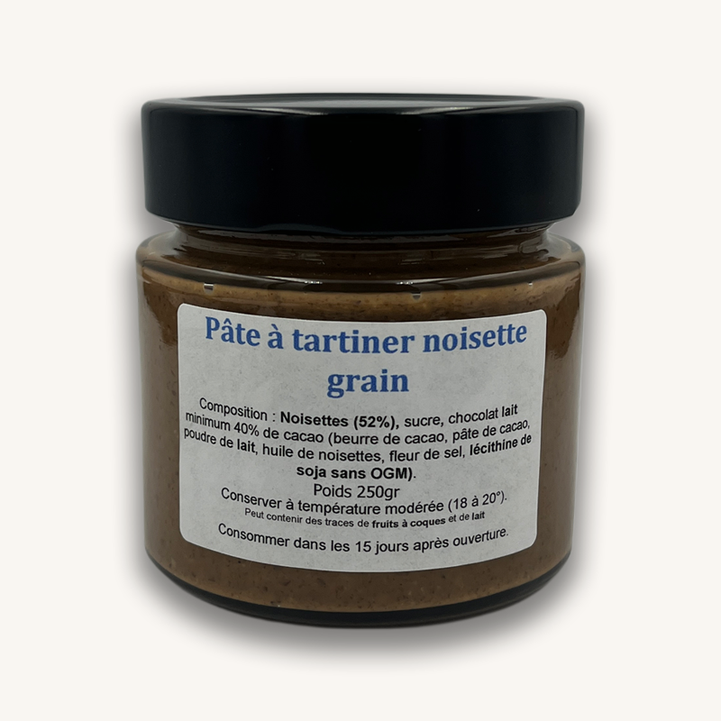 Une pâte à tartiner riche en noisettes IGP. Sans huile de palme bien sûr, mais aussi sans aucune huile ajoutée: la qualité de la noisette utilisée suffit à son onctuosité. Peu sucrée, onctueuse et parfumée: de la noisette en pot...